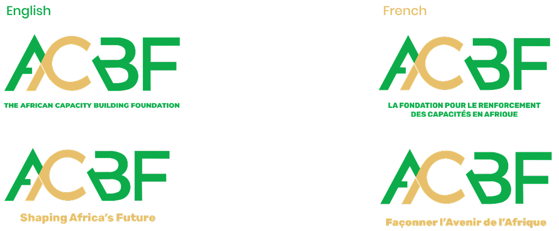 The ACBF logo is available with a tagline in both English and French. The choice of language should align with the primary language of the target audience or the communication material. It is important to use the correct language version consistently across all applications to maintain clarity, accessibility, and brand integrity